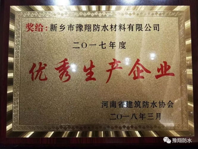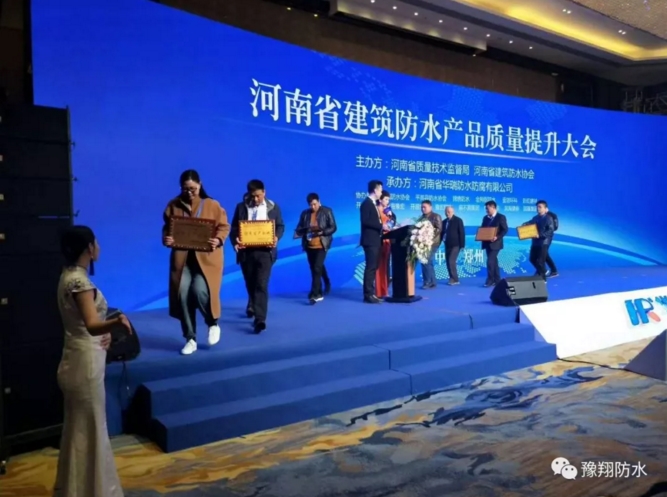 熱烈祝賀我司被<河南省建筑防水產品質量提升大會>評為:2017年度優秀生產企業獎。