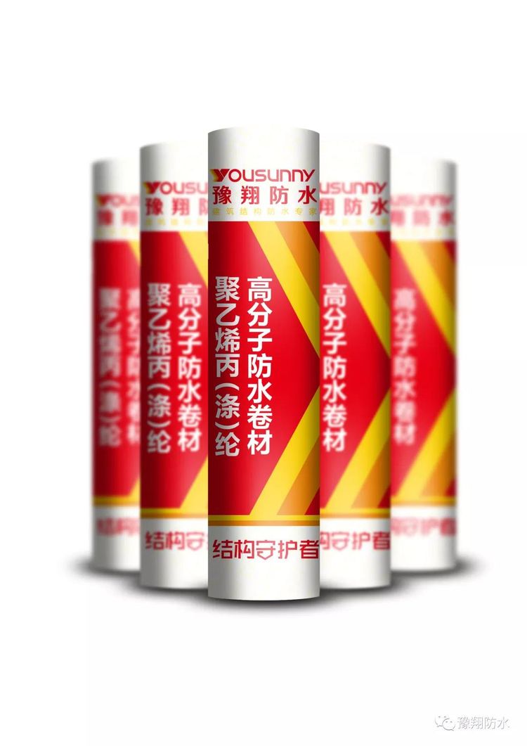聚乙烯丙綸、滌綸防水卷材是以性能優(yōu)異的LLDPE、EVA原生樹脂和強(qiáng)度高、耐老化性能優(yōu)異的合成高分子纖維布為主要原料,配以抗老化劑、穩(wěn)定劑、紫外線屏蔽劑、經(jīng)塑料工藝一次擠出成型的高分子防水卷材。